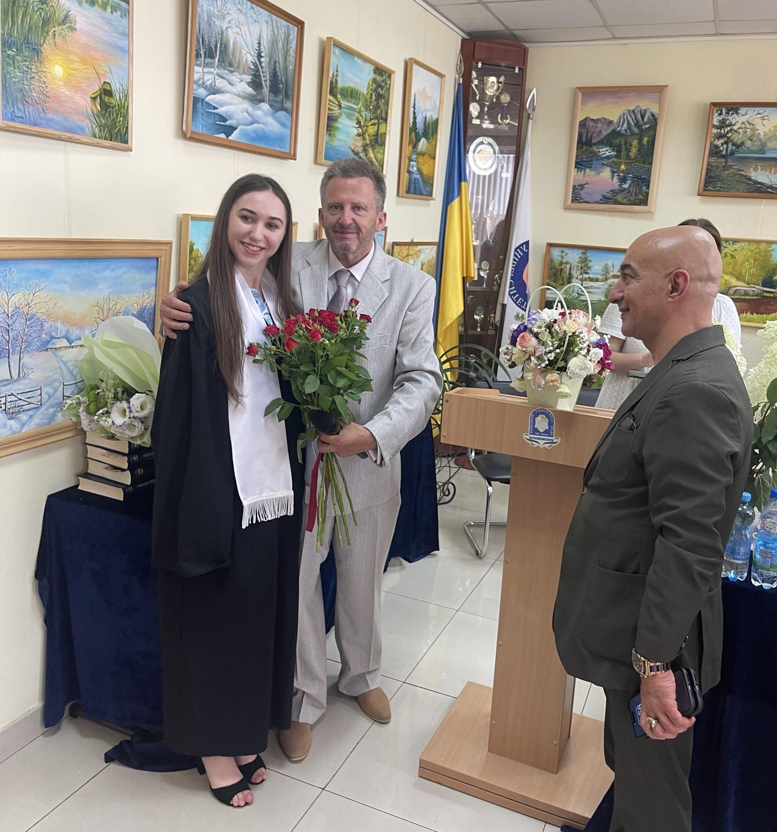 Також з вітальними словами до випускників звернулися партнери КУП НАНУ, які були запрошені на урочисту церемонію в якості почесних гостей, серед яких були й іноземні партнери: Айхан Оздемір – турецький бізнесмен, меценат, волонтер, президент компанії «YES GROUP», Ресул Челик – генеральний директор компанії «ОДАШ», Чічекдаті Сердал – генеральний директор компанії «СЕРБЕЙ» та давній і надійний партнер КУП НАНУ Максим Фліссак – заступник директора Департаменту з продажів банківських продуктів «КОМІНБАНК». Вони щиро привітали нових фахівців та побажали їм успіхів у побудові майбутньої кар’єри.