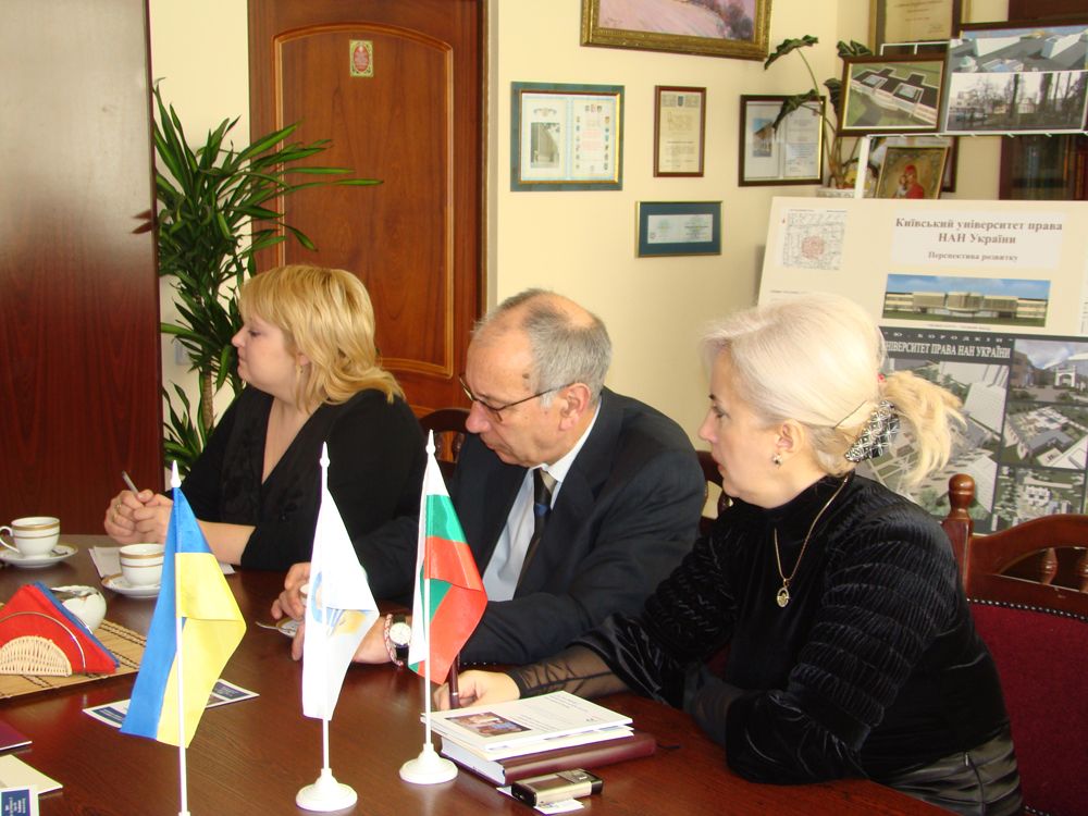 В рамках встановлення нових міжнародних контактів КУП НАН України з юридичним факультетом Софійського університету Ст. Клімент Охридські (Болгарія), відбулася робоча зустріч ректора професора Юрія Бошицького з деканом факультету професором доктором Тенчо Колев Дундовим та помічником декана професором доктором Дончо Хрусановим. Також на зустрічі були присутні проректор з наукової роботи Олена Чернецька, зав. відділу міжнародних зв’язків та грантів Ольга Бурлакова, директор культурно-розважального центру Марія Дорощенко.