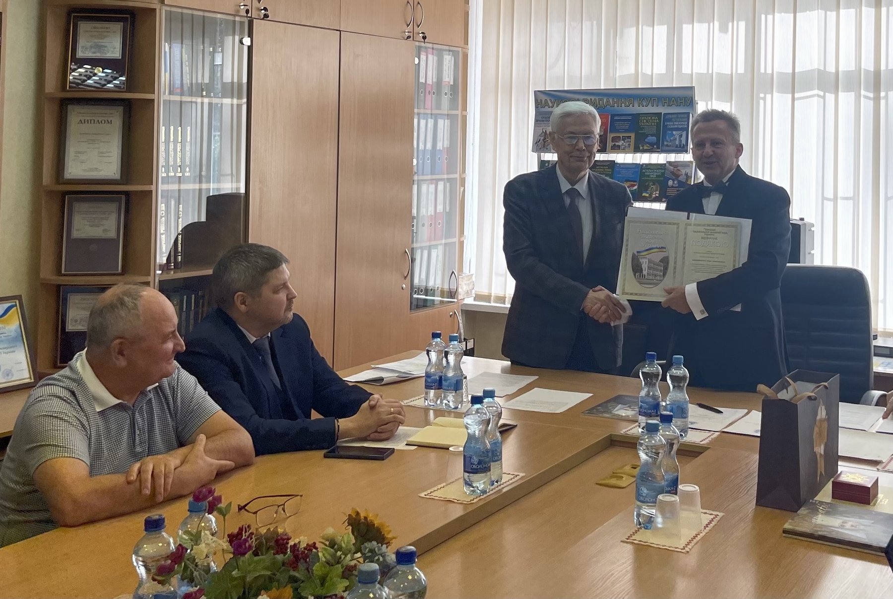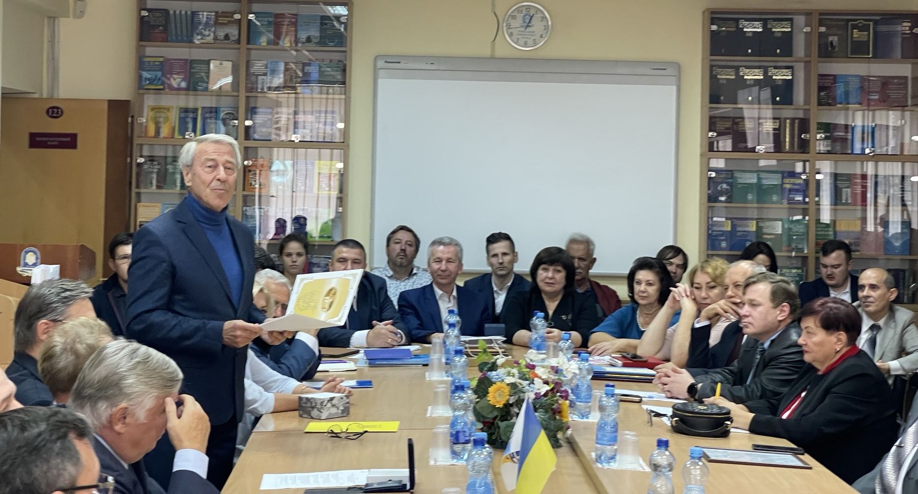 Завідувач Вінницького науково-консультативного центру КУП НАНУ Юрій Ковальчук, який передав Почесну грамоту від Вінницької обласної військової адміністрації та обласної Ради за багаторічну сумлінну працю, високий професіоналізм, вагомий особистий внесок у підготовку висококваліфікованих спеціалістів на Вінниччини.