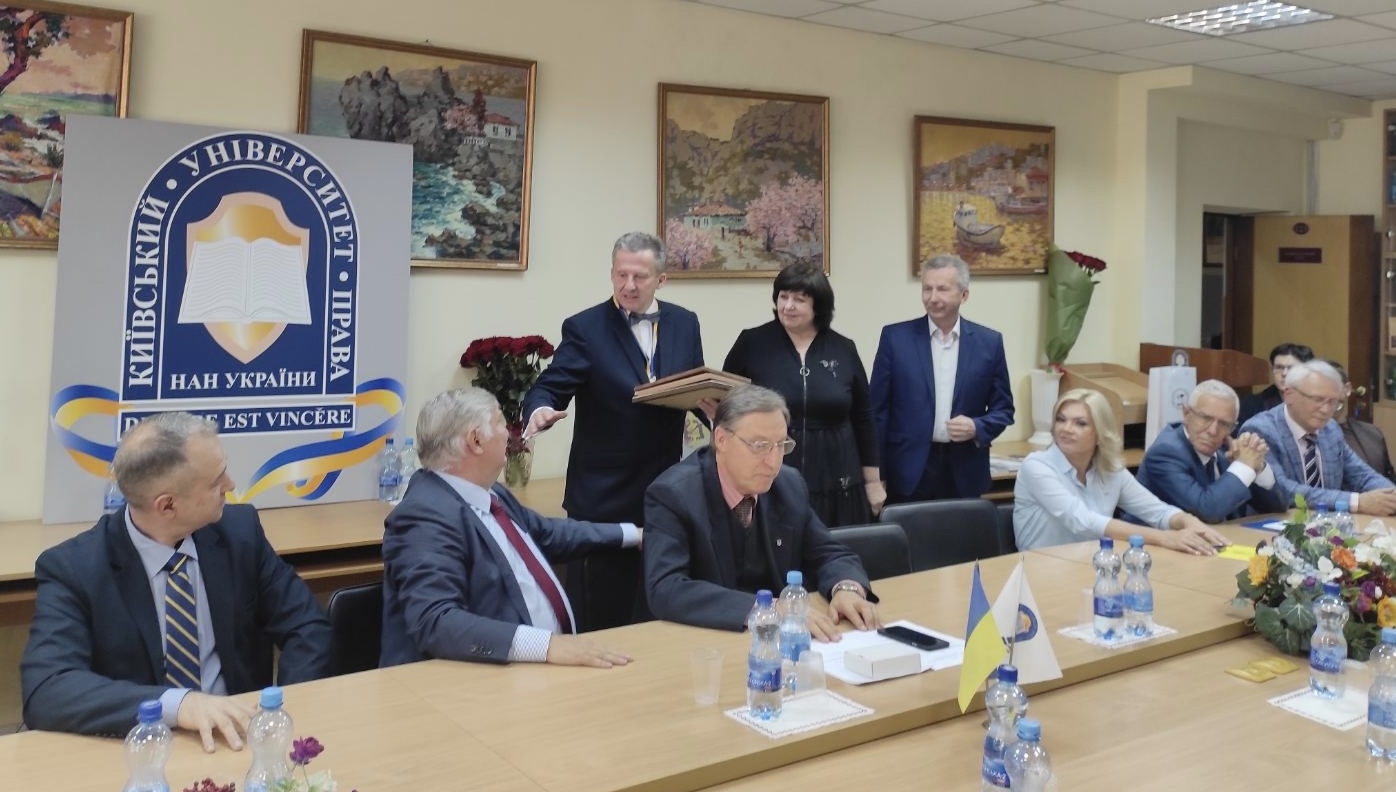 Також він оголосив подяку ректорові від НАН України за багаторічну плідну наукову, науково-організаційну і педагогічну працю, високопрофесійні здобутки та вагомий особистий внесок у розвиток юридичної науки ц підготовку нового покоління фахівців з високим рівнем кваліфікації.