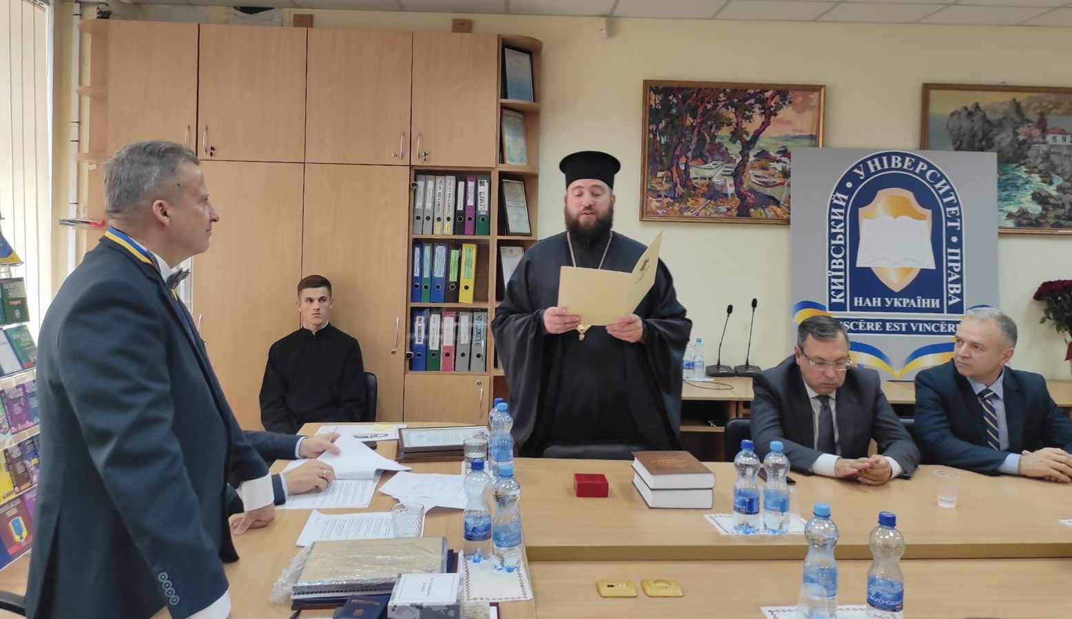 Єпископ Єфрем привітав ректора та передав нагороду від Митрополита Київського і всієї України, Предстоятеля Православної Церкви України Епіфанія – орден Святого Великомученика Юрія Переможця за віддане служіння Україні та жертовність у захисті добра і правди та плідну співпрацю з Київською православною богословською академією ПЦУ.