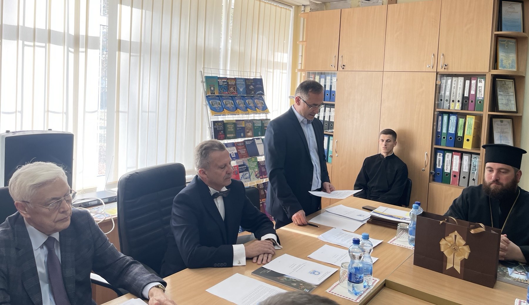 Єпископ Єфрем привітав ректора та передав нагороду від Митрополита Київського і всієї України, Предстоятеля Православної Церкви України Епіфанія – орден Святого Великомученика Юрія Переможця за віддане служіння Україні та жертовність у захисті добра і правди та плідну співпрацю з Київською православною богословською академією ПЦУ.