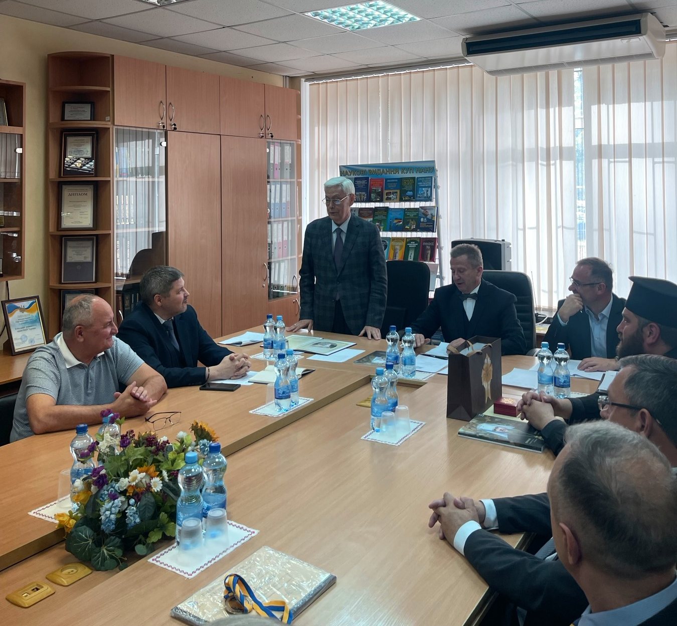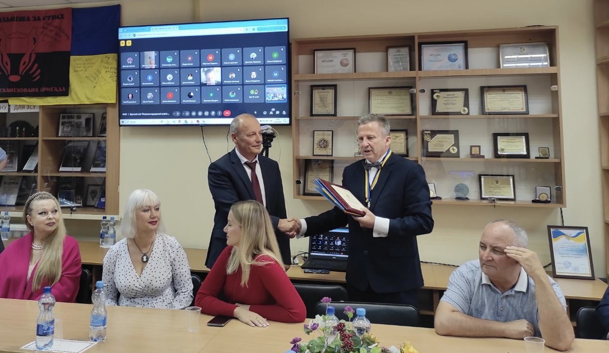 Завідувач Вінницького науково-консультативного центру КУП НАНУ Юрій Ковальчук, який передав Почесну грамоту від Вінницької обласної військової адміністрації та обласної Ради за багаторічну сумлінну працю, високий професіоналізм, вагомий особистий внесок у підготовку висококваліфікованих спеціалістів на Вінниччини.