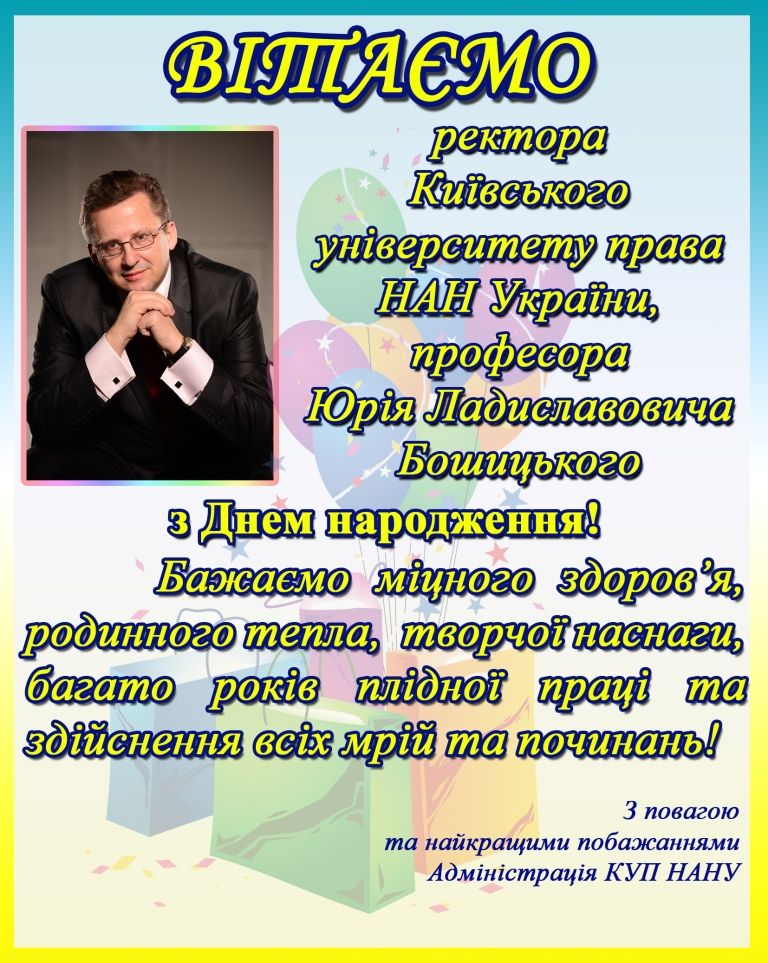 Вітаємо ректора,професора,Заслуженого юриста України Бошицького Юрія Ладиславовича з Днем народження!