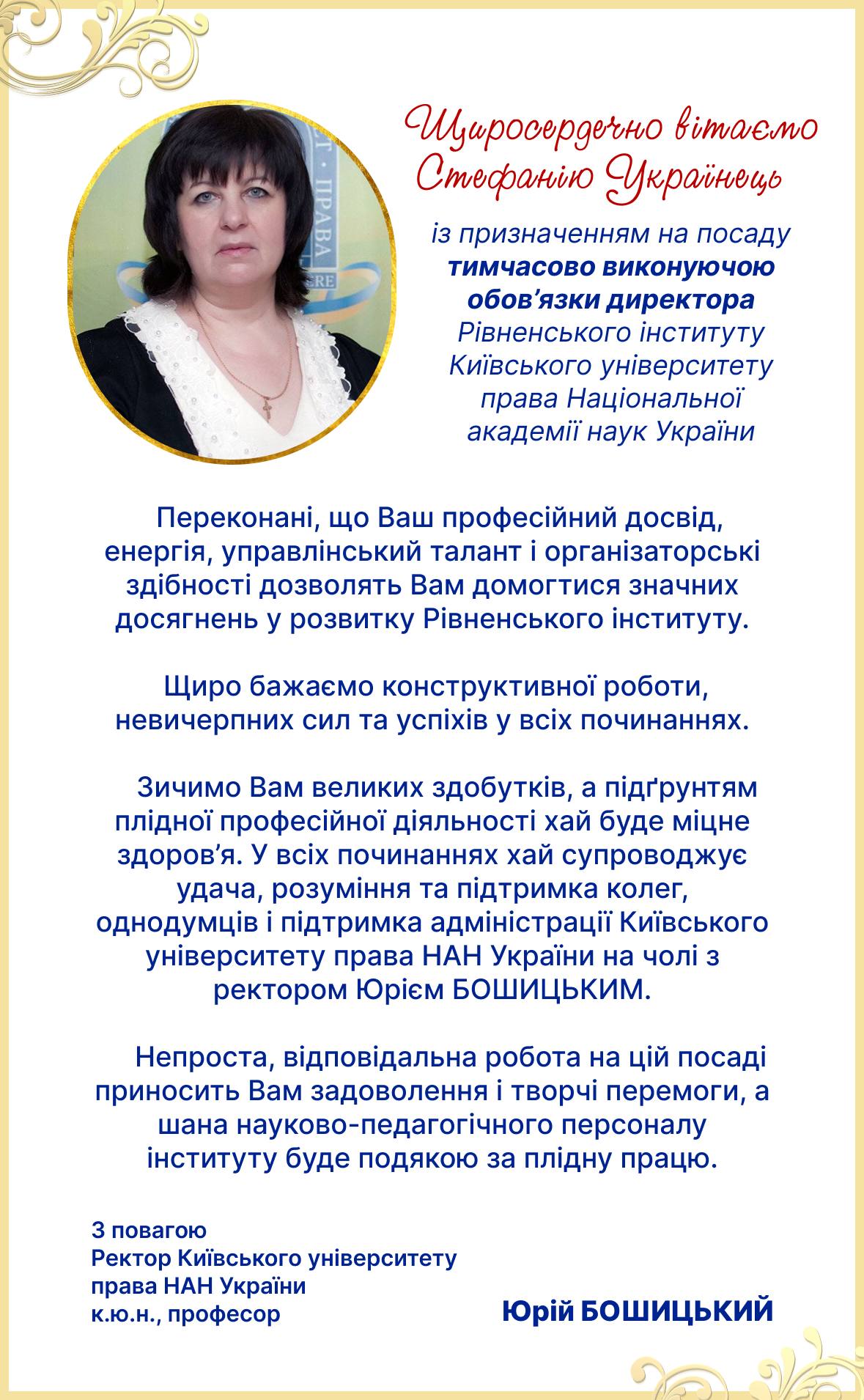 Вітаємо С.Я. Українець призначенням на посаду т.в.о. директора РІ КУП НАН України!