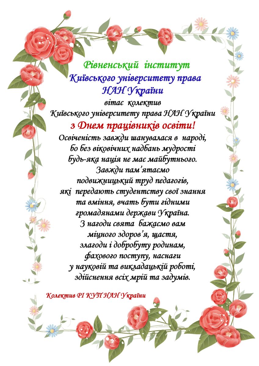 Вітання колективу РІ КУП НАНУ з Днем працівників освіти