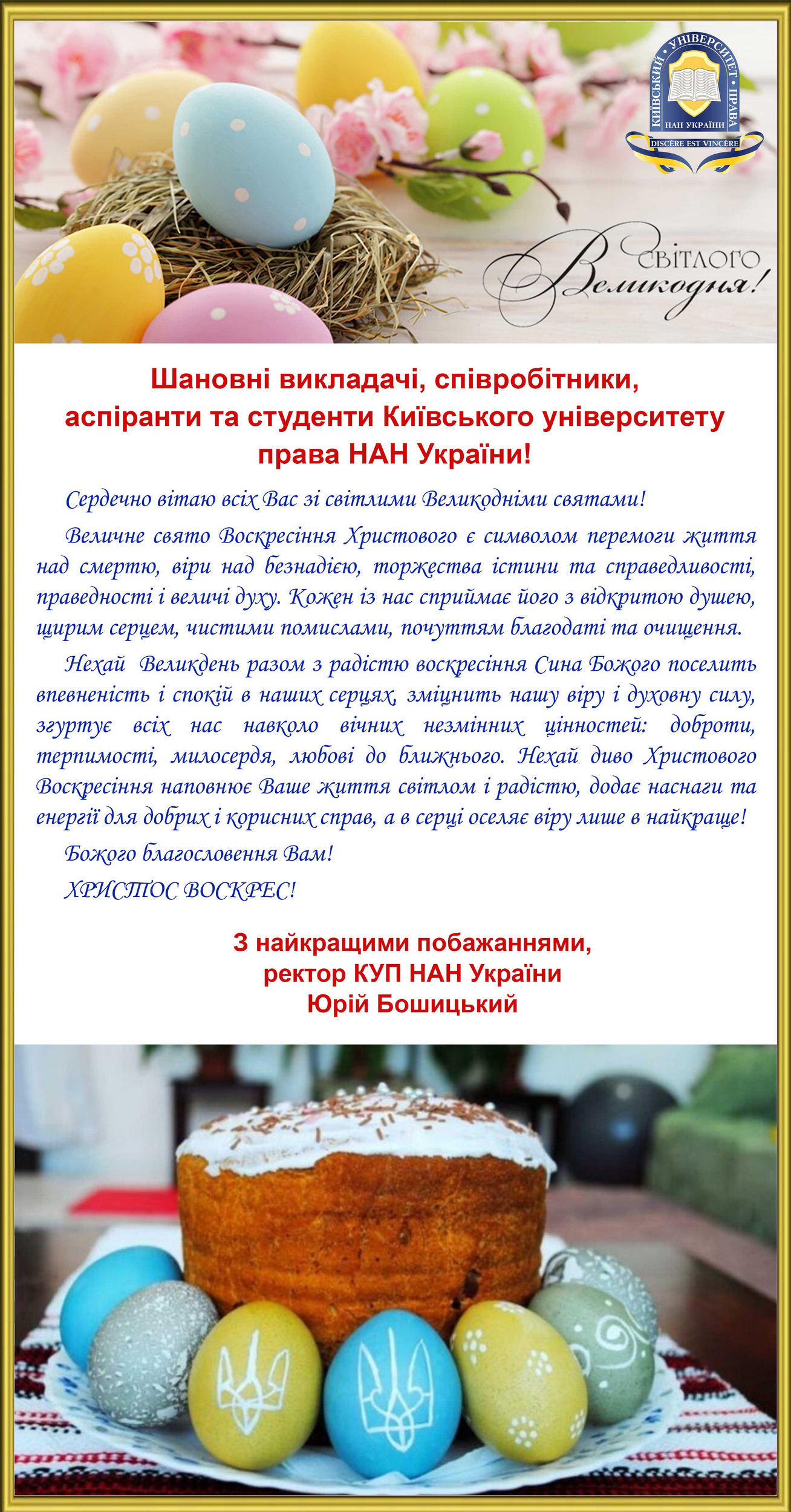 Вітання ректора КУП НАНУ з Великоднем