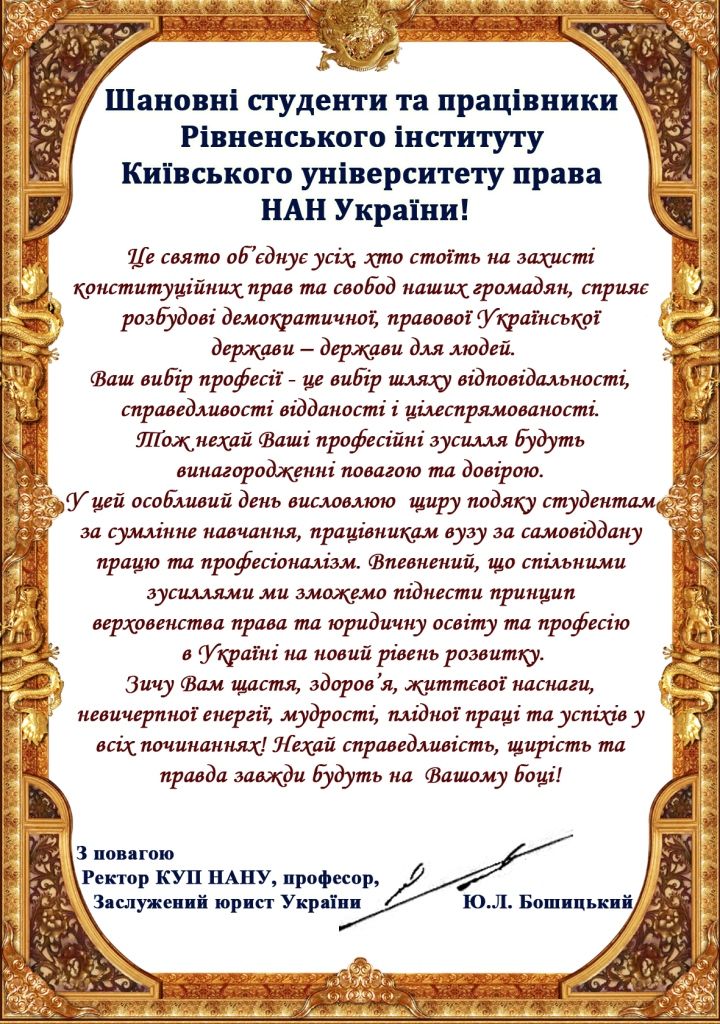 Вітання ректора з Днем юриста