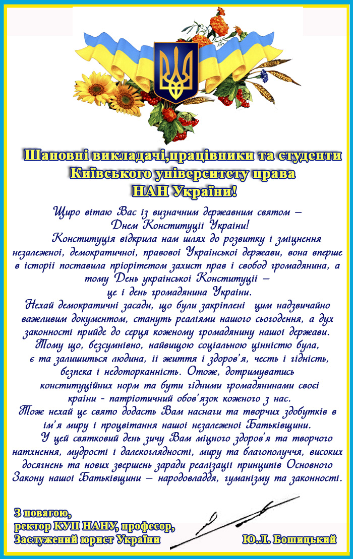 Вітання ректора з Днем Конституції України
