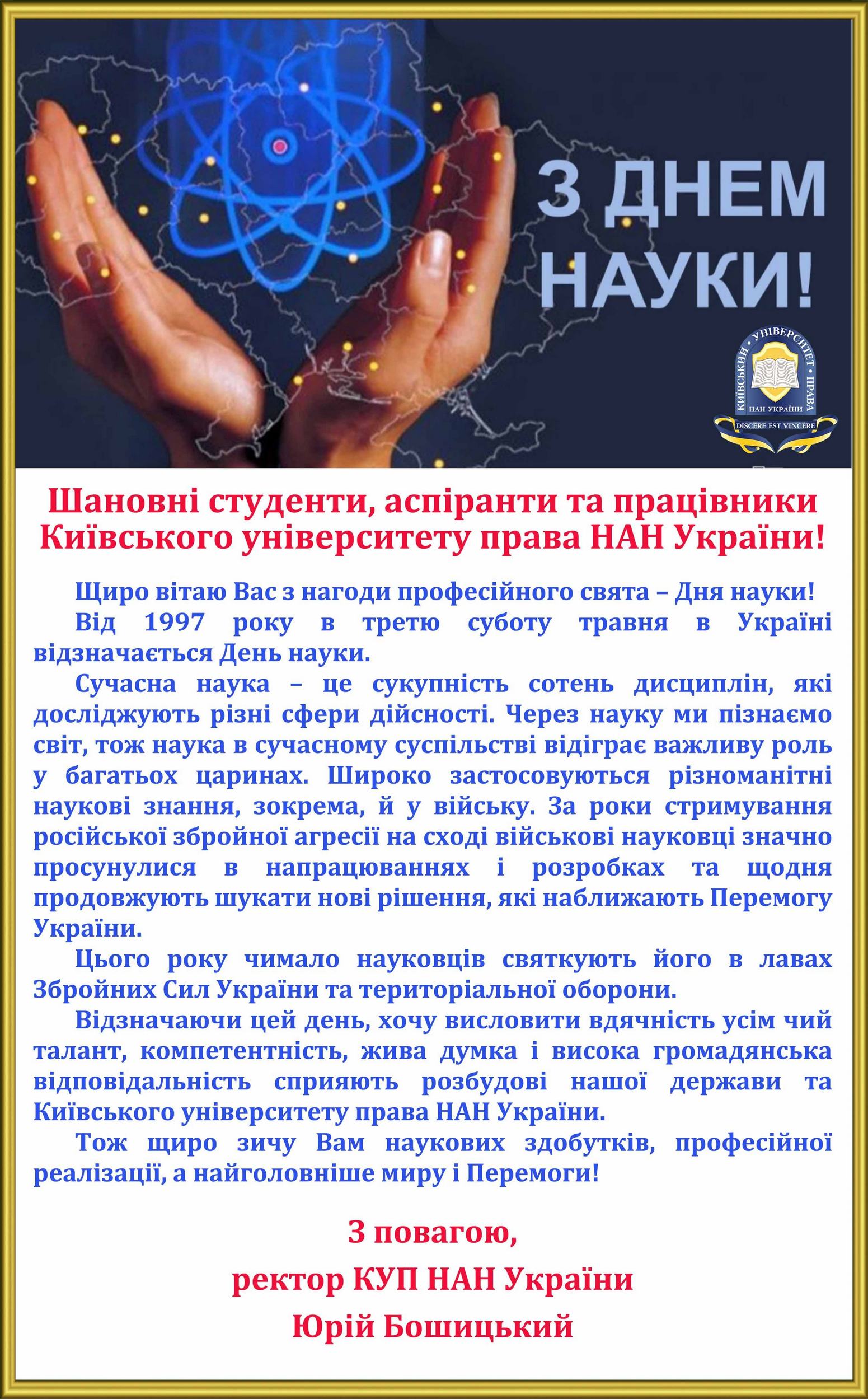 Вітання ректора з Днем науки