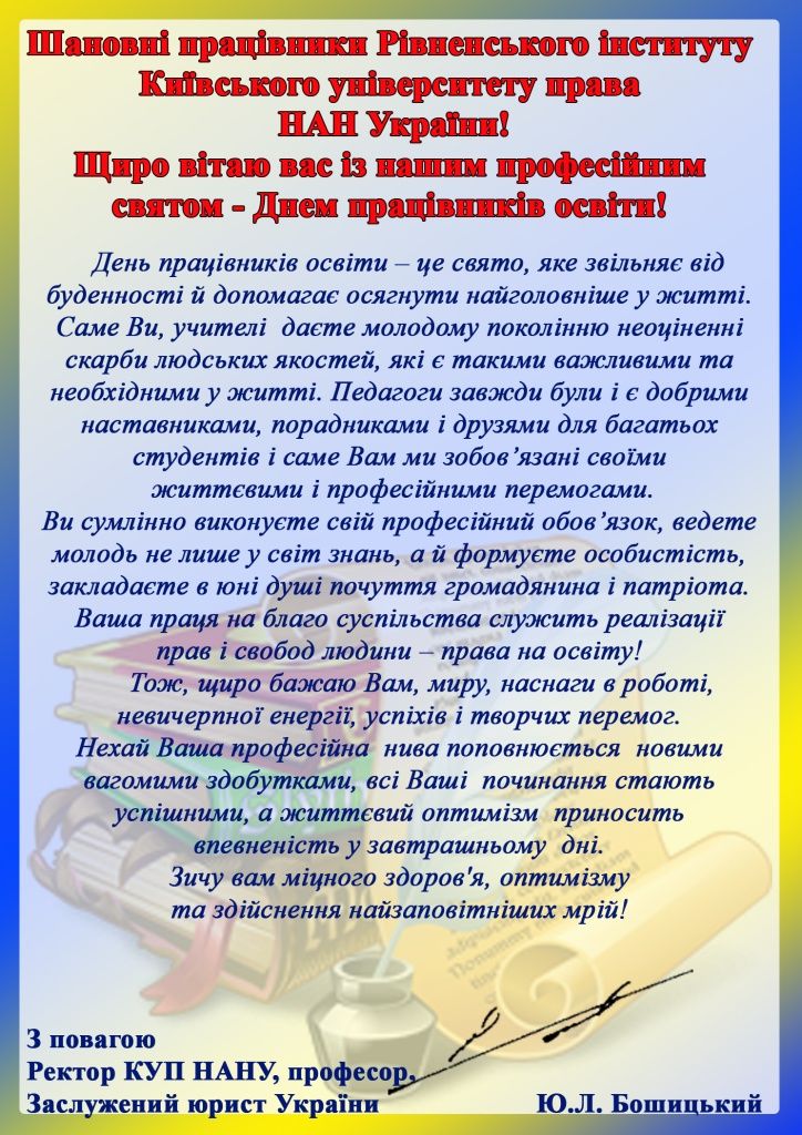 Вітання ректора з Днем освіти