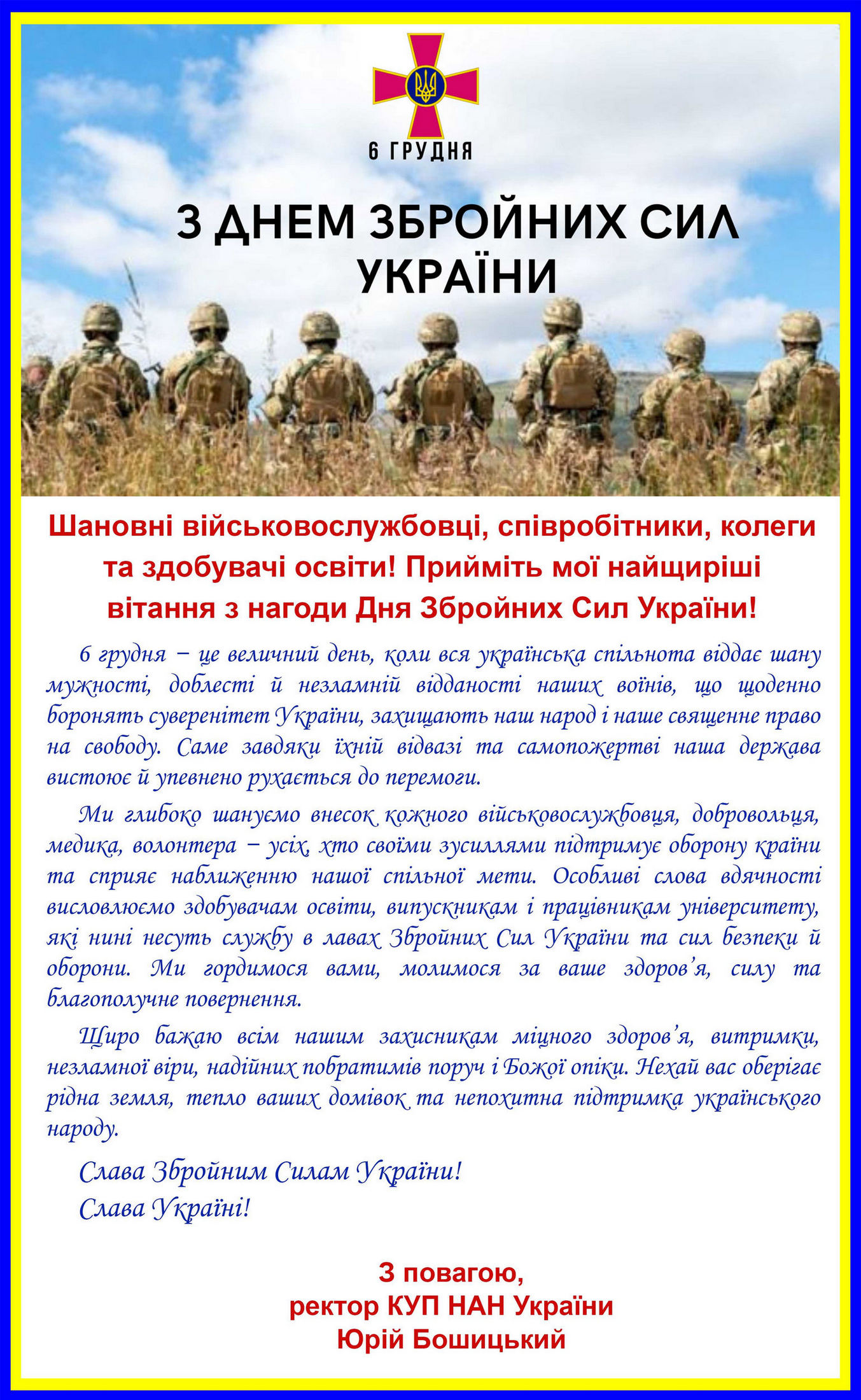 Вітання ректора з нагоди Дня Збройних Сил України