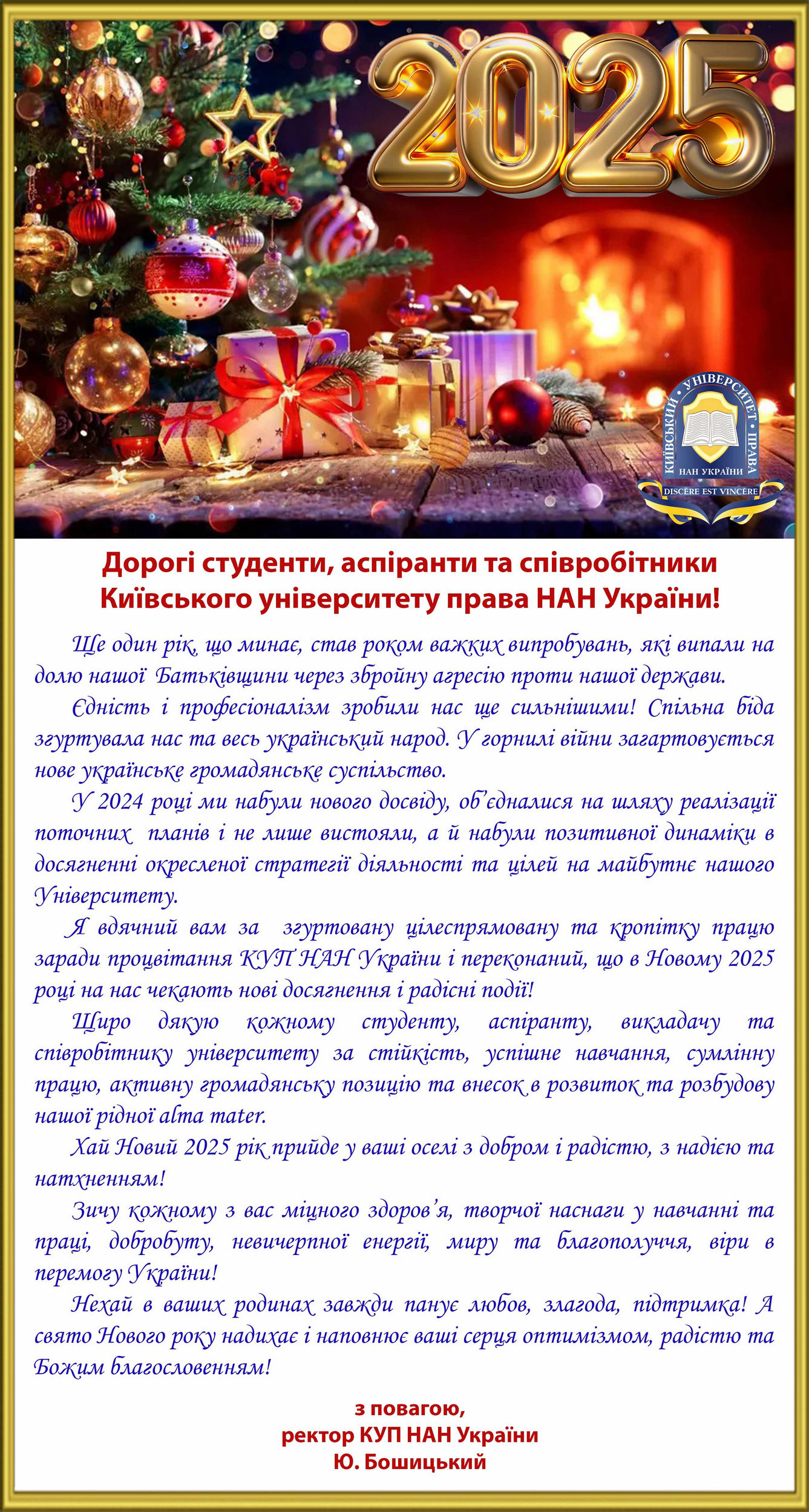 Вітання ректора з Новим роком