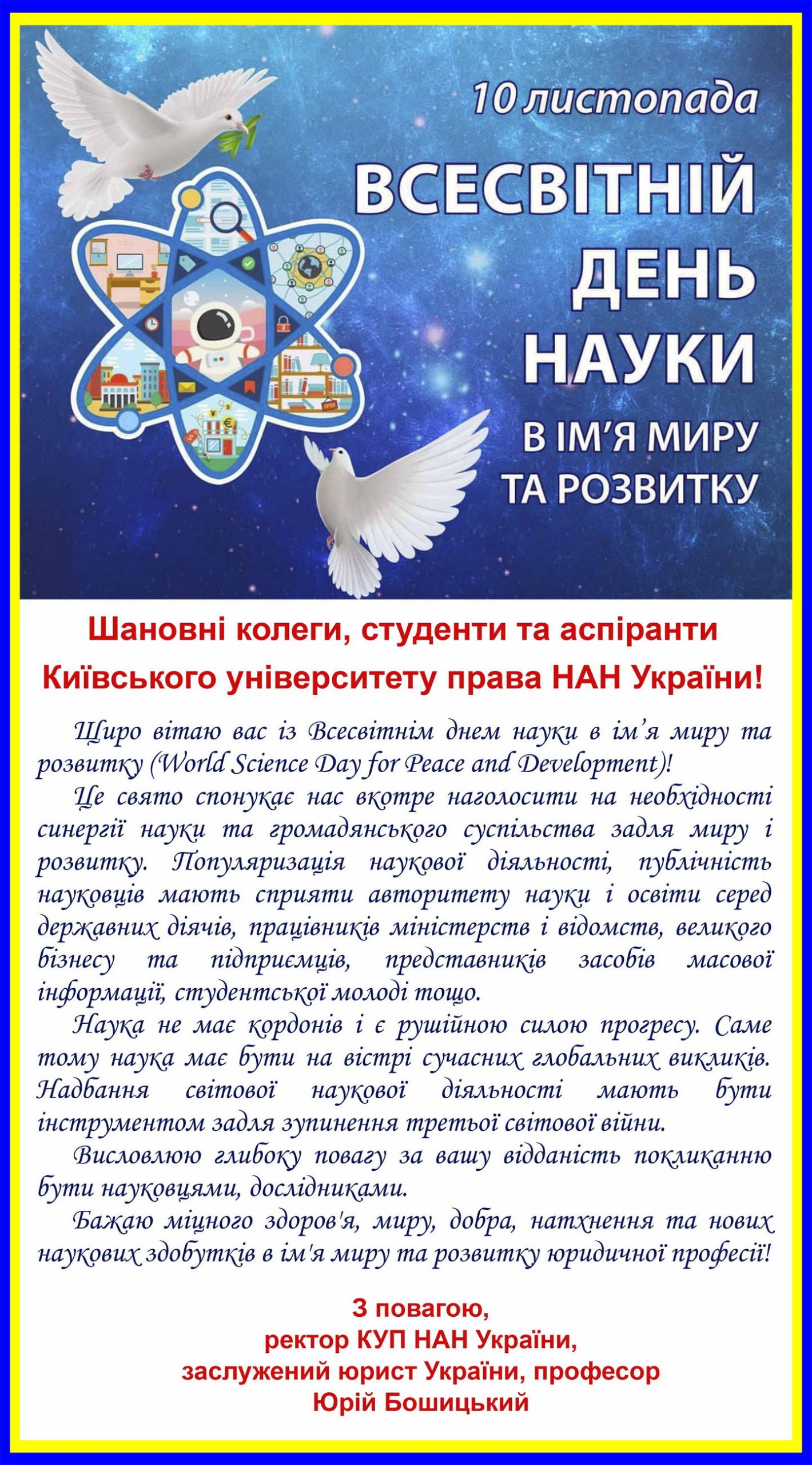 Вітання ректора з Всесвітнім днем науки