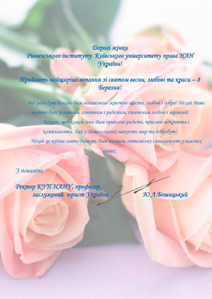 Вітання ректора жінкам РІ КУП НАНУ з 8 березня