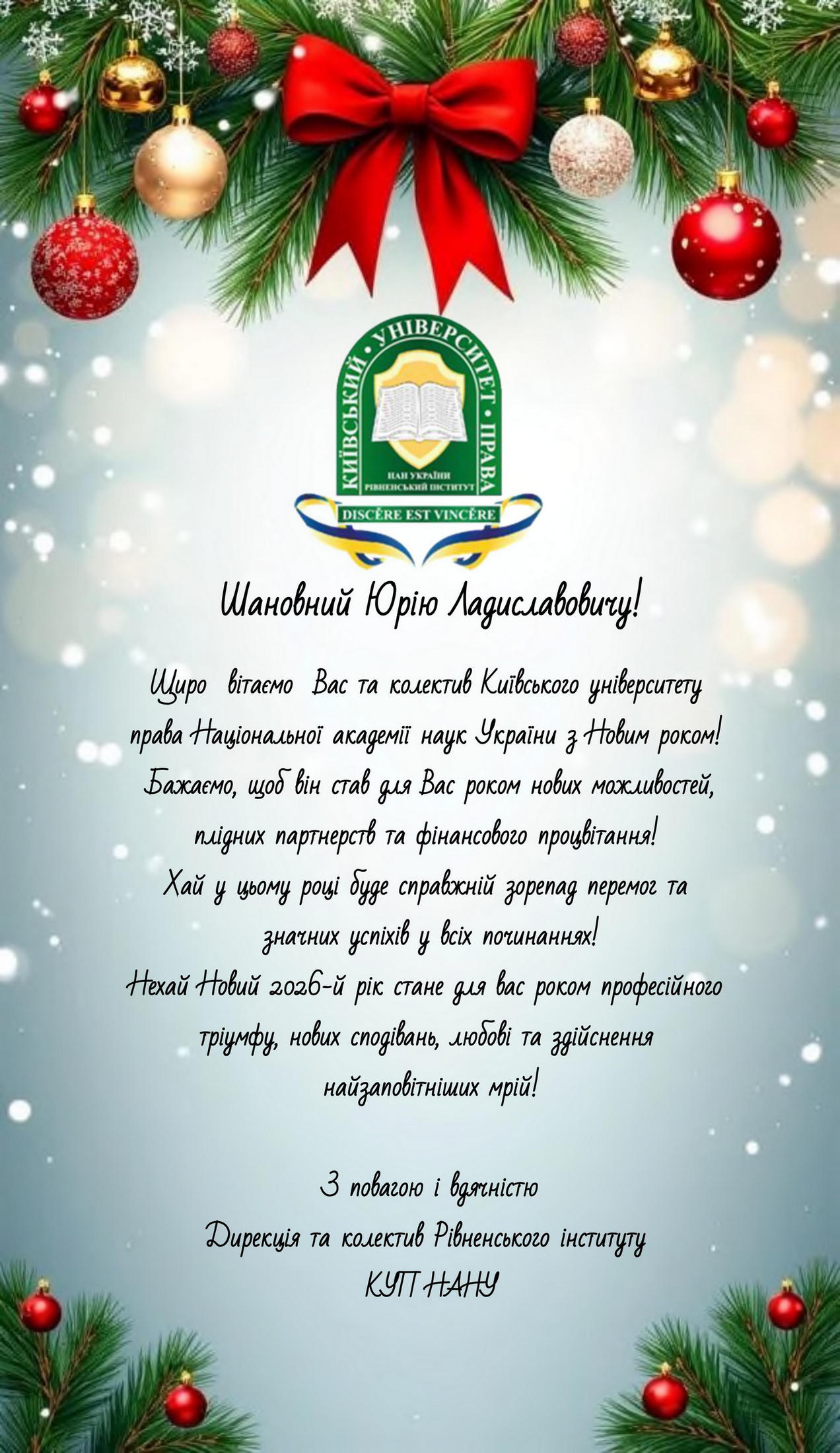 Вітання від колективу РІ КУП НАНУ з Новим роком