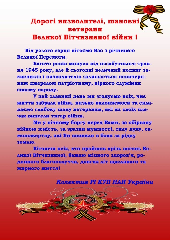 Вітання від колективу Рівненського інституту КУП НАН України з Днем Перемоги