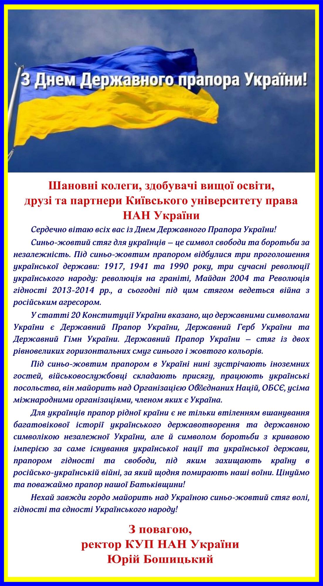 Вітання з Днем Державного прапора України