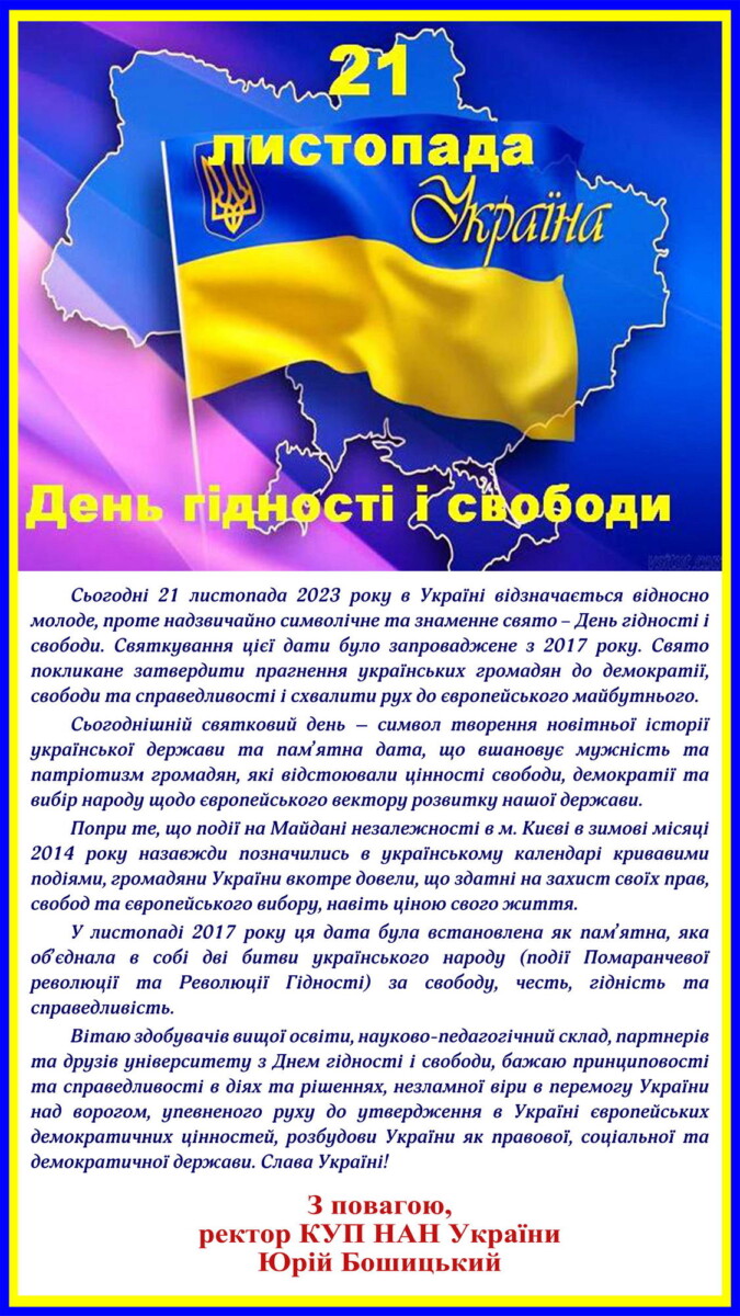 ВІТАННЯ РЕКТОРА З ДНЕМ ГІДНОСТІ ТА СВОБОДИ