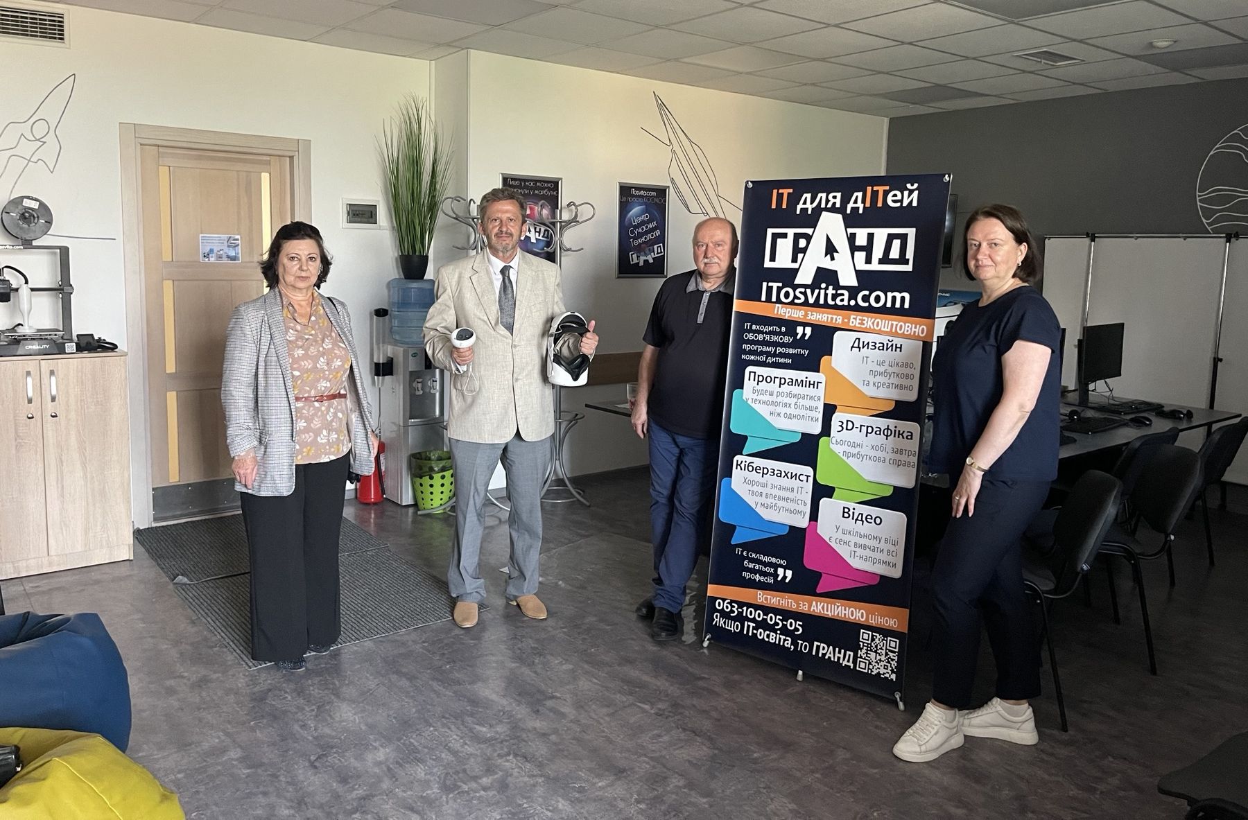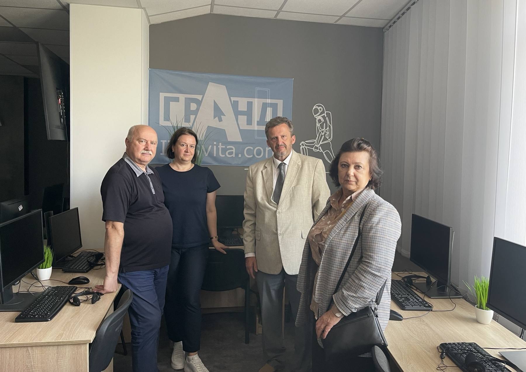Перебуваючи у робочій поїздці, 5 червня 2024 року, представники КУП НАНУ України – ректор Юрій Бошицький, проректорка з навчально-методичної роботи Олена Антонова, проректорка з питань забезпечення та перспективного розвитку Алла Вільчинська та проректор з адміністративної роботи Анатолій Маркевич – відвідали ПП Навчальний центр “Гранд”, засновником і керівником якого є Борис Петрушин.