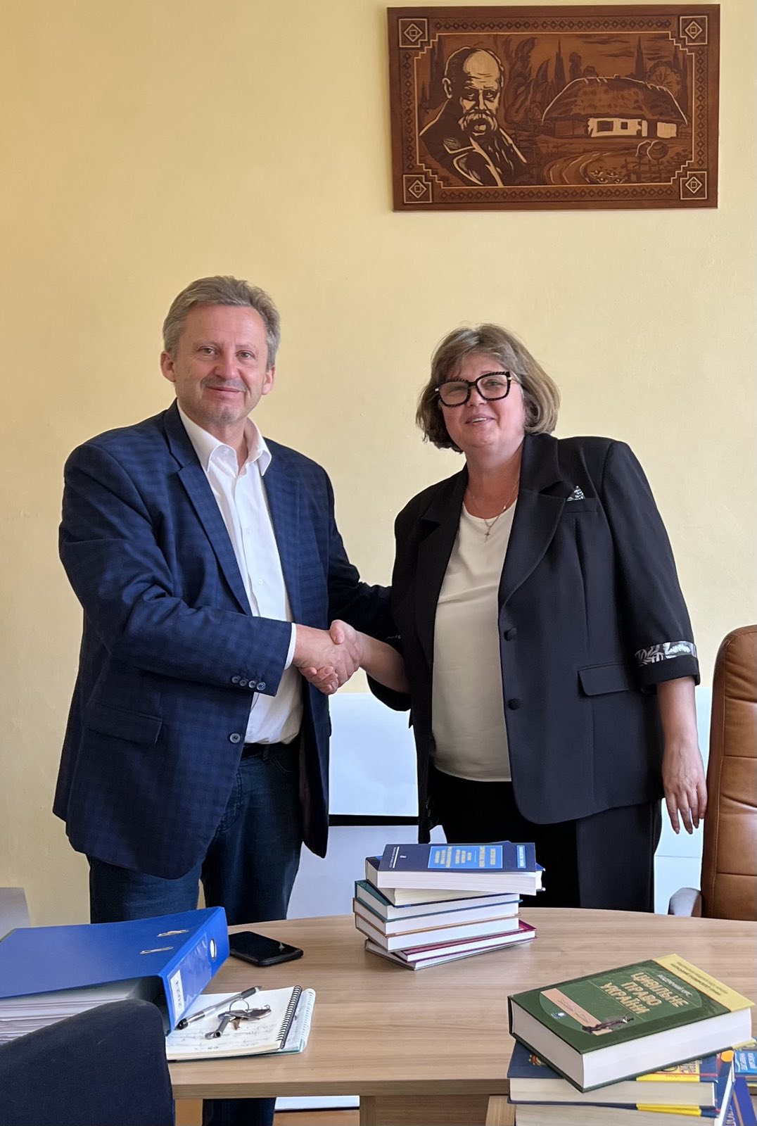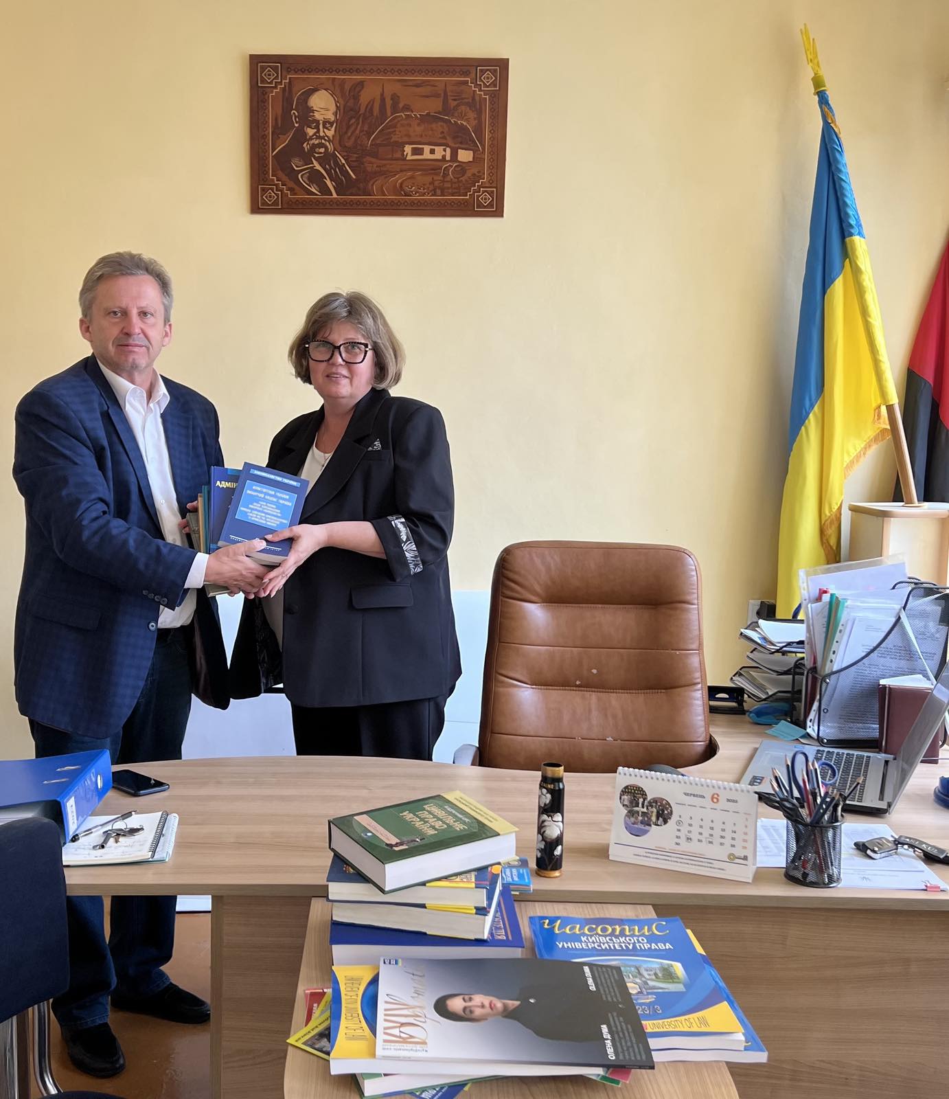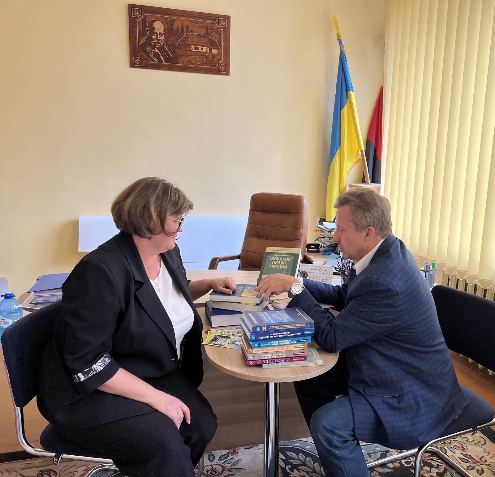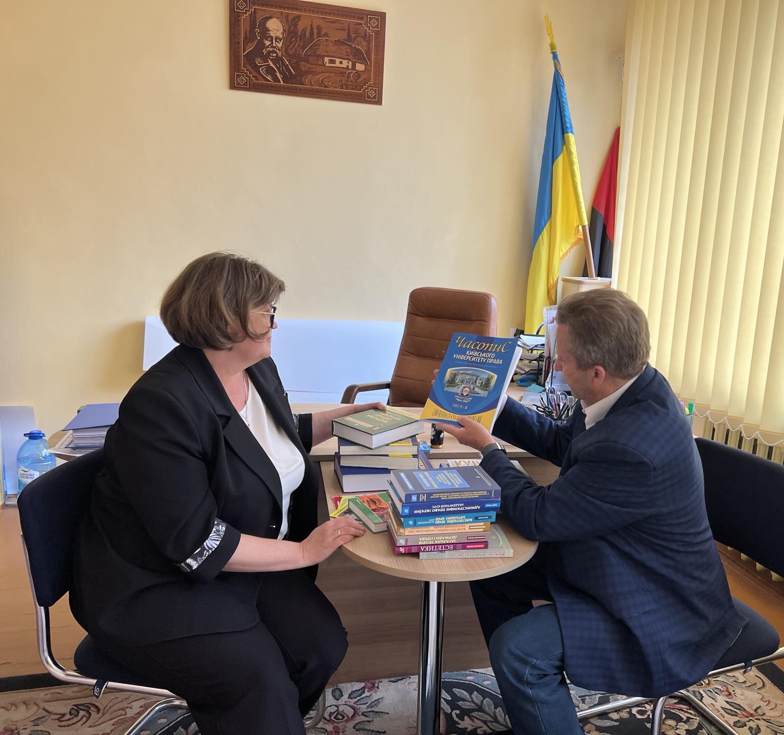 Ректор в рамках університетського проєкту щодо популяризації юридичної науки в регіонах презентував Ірині Сьомачок рекламну продукцію університету та наукові видання.