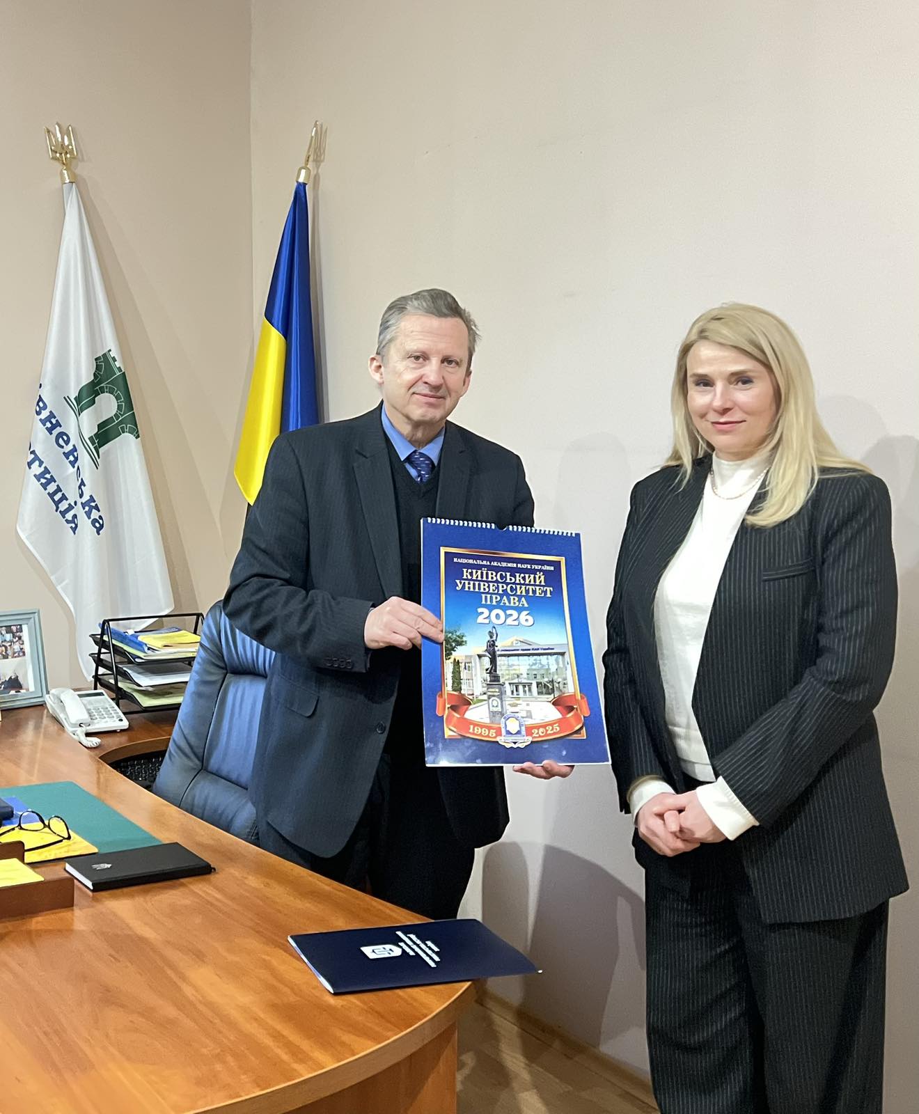 22 січня відбулася знакова подія для юридичної спільноти регіону: Львівське міжрегіональне управління Міністерства юстиції та Київський університет права НАН України (КУП НАНУ) офіційно закріпили партнерство. Договір, спрямований на розвиток освітньої, наукової та практичної діяльності, підписали ректор КУП НАНУ Юрій Бошицький та заступниця начальника міжрегіонального управління Міністерства юстиції України у Рівненській області Оксана Сальчук. Метою укладеного договору є налагодження співпраці та обмін досвідом, удосконалення практичних навичок студентів, що навчаються за освітньою програмою «Право» в Київському університеті права Національної академії наук України та його відокремлених структурних підрозділах. Ректор презентував очільниці Рівненської юстиції нові наукові та презентаційні видання КУП НАНУ. Сторони домовилися про співпрацю у реалізації спільних заходів, проєктів і програм, спрямованих на підвищення професійного розвитку студентів та обмін інформацією в сфері практичної, наукової, освітньої діяльності.