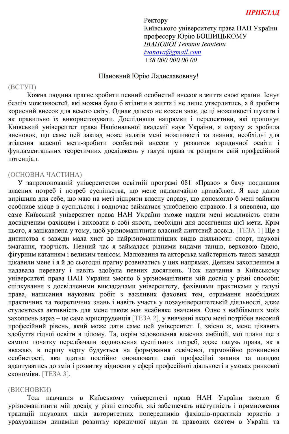 Вимоги до мотиваційного листа (§ 7 Правил Прийому до Київського університету права Національної академії наук України):