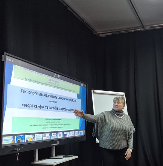 Семінар проведено 17 жовтня 2025 року для психологів, соціальних педагогів і педагогічних працівників закладів освіти в межах циклу «Психологічна підтримка та допомога під час війни в позашкільній освіті». Захід відбувся у Центрі національно-патріотичного виховання та позашкільної освіти Рівненської обласної ради. Педагоги та психологи обговорили шляхи зміцнення емоційної стійкості, гармонізації особистості та розвитку професійного благополуччя. Темою виступу доктора соціологічних наук Олесі Кириленко стали «Технології менеджменту особистого щастя та засоби природотерапії».