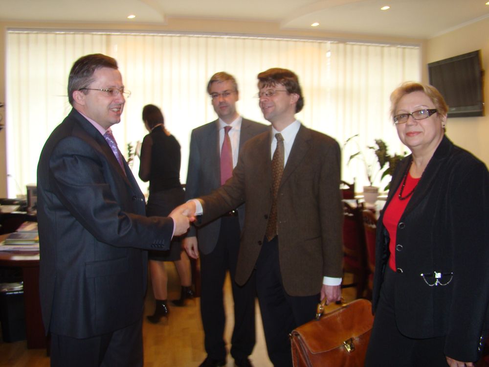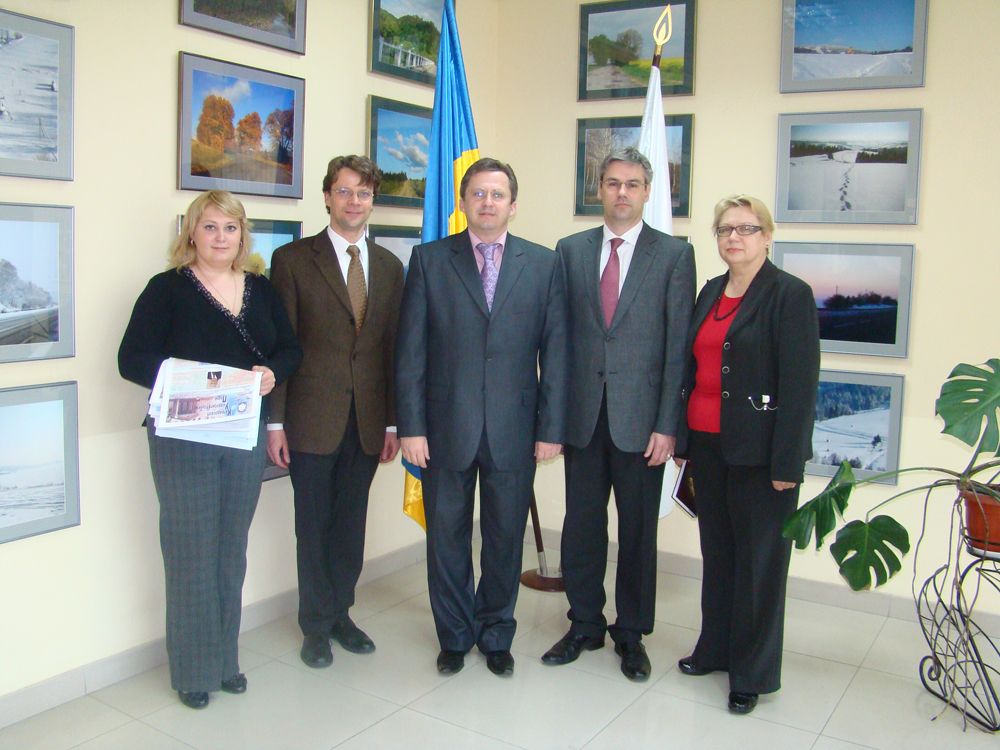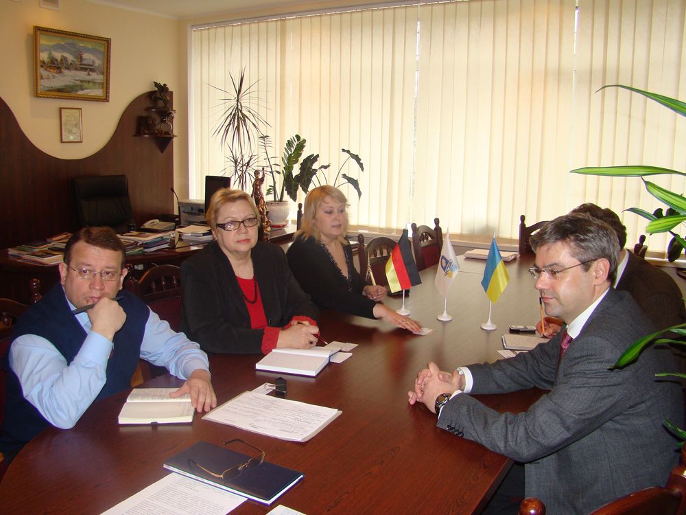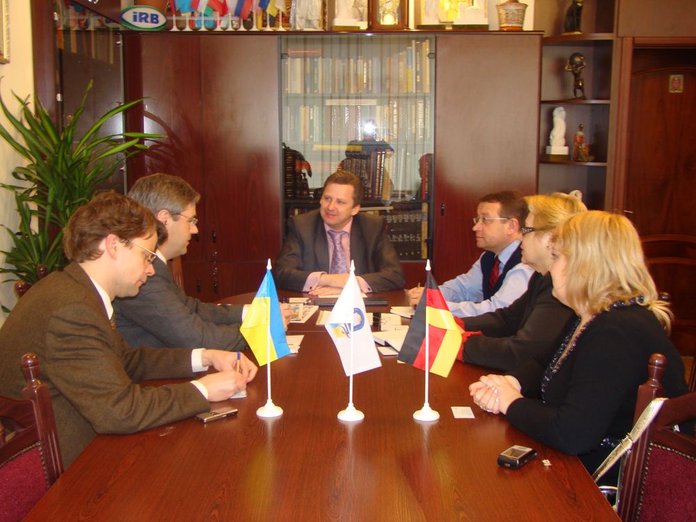 В рамках розвитку міжнародних відносин між науковими та навчальними закладами в сфері юриспруденції України і Німеччини, за сприяння Посольства Федеративної Республіки Німеччина в Україні, в КУП НАН України відбулась зустріч ректора проф. Ю. Бошицького з керівником проектів міжнародного правового співробітництва паном Штефаном Хюльсхьорстером. На зустрічі були присутні представники Посольства Німеччини пан Геннадій Рижков та пан Вольфрам Хертиг, завідувач кафедри іноземних мов В. Крепель, керівник відділу міжнародних зв’язків і грантів О. Бурлакова.