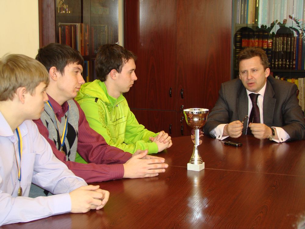 Зустріч пройшла у теплій і дружній атмосфері. Ректор подякував за перемогу, побажав щоб на цьому команда не зупинялася і надалі радувала нас своїми перемогами, прославляючи наш університет. А також  відзначив, що фізичне виховання та спорт в сучасному житті набувають нових рис,  в тому числі і в підготовці фахівців, тож зі свого боку пообіцяв  команді всебічну підтримку.